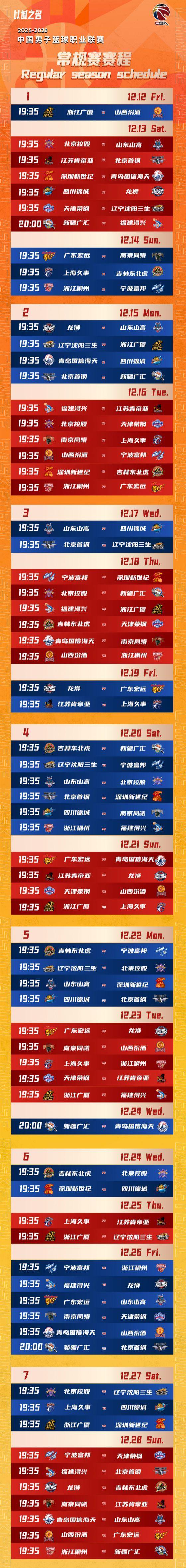 42 轮常规赛的赛程安排,不仅兼顾了球队的出行与休息,更充分考虑了球迷的观赛体验 —— 从 12 月的揭幕战到后续的节假日大战,几乎每个关键时间点都有焦点赛加持,让球迷在冬春两季都能有精彩比赛可看。